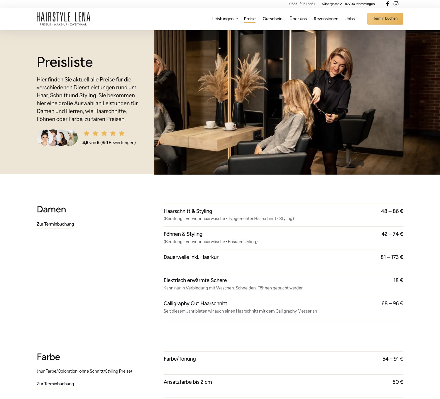 Leistungen, Preise, Team und Salon transparent zeigen